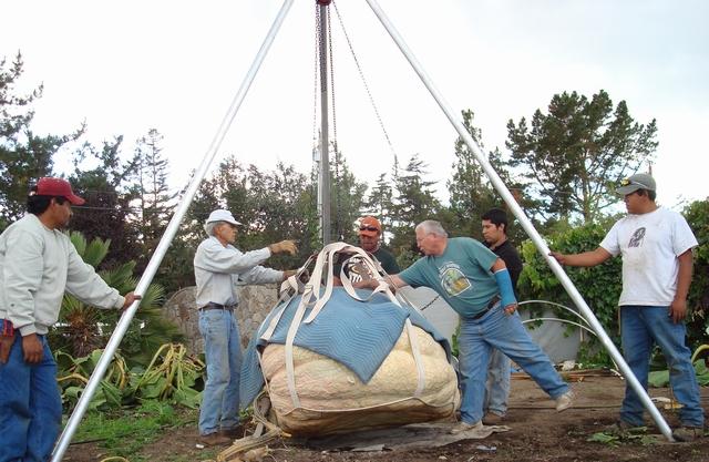 Pete, Jose and Loren Vanderschoot make some final adjustments on the lifting straps.